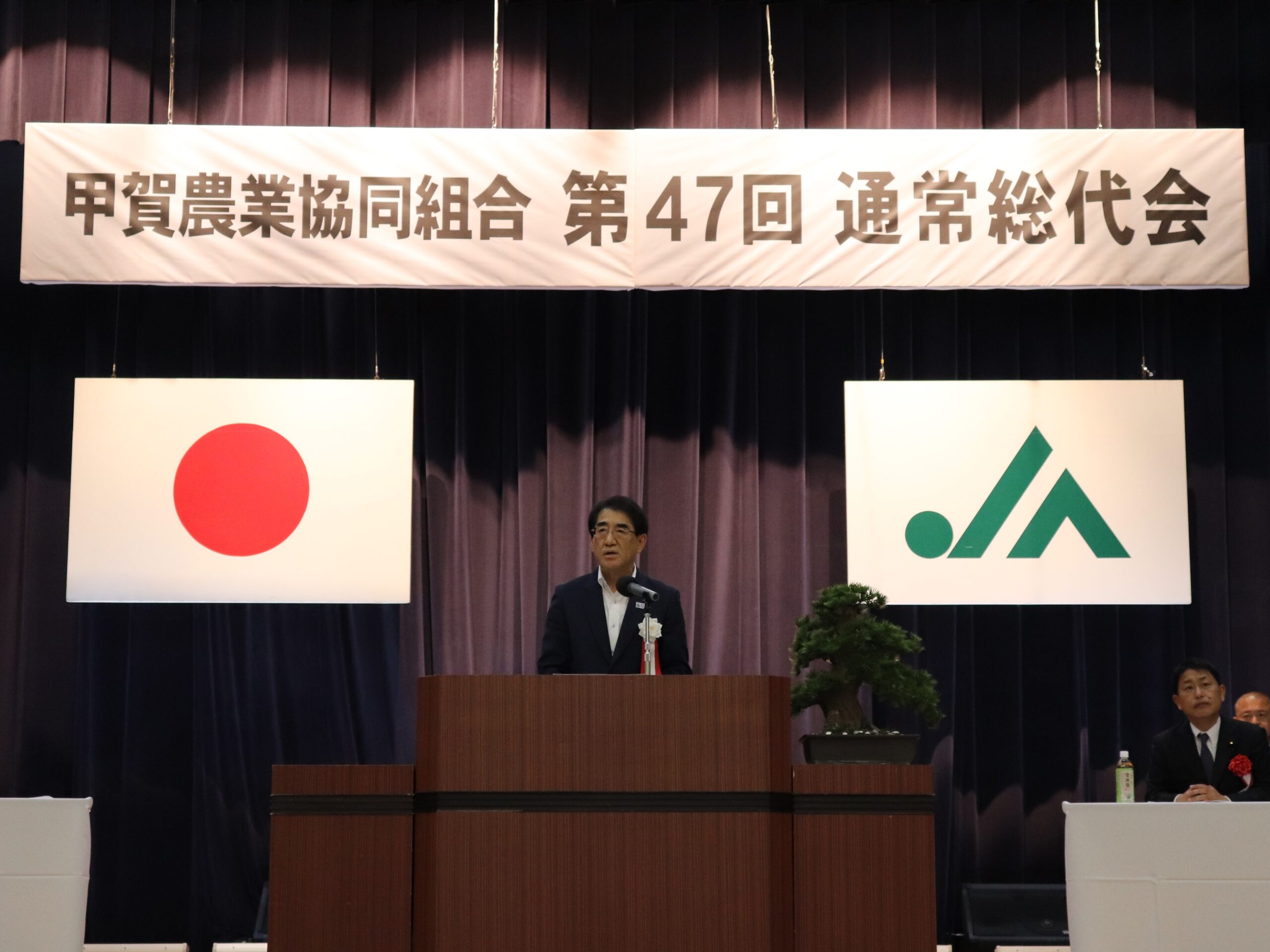 当JAは6月21日、本所JAホールで第47回通常総代会を開き、書面出席を含む総代497人が出席しました。