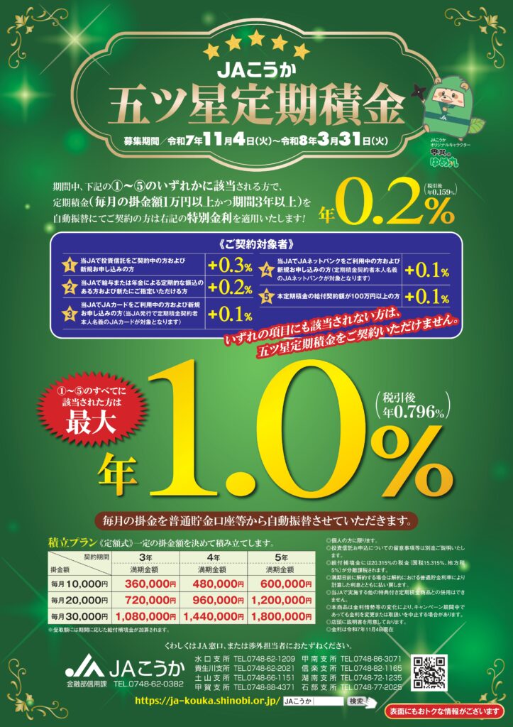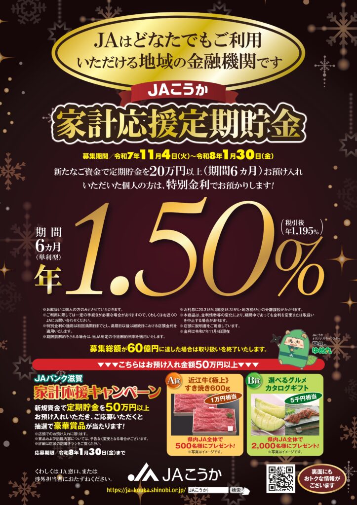 この冬は、JAこうかの『家計応援定期貯金』でおトクにスタートしましょう!
