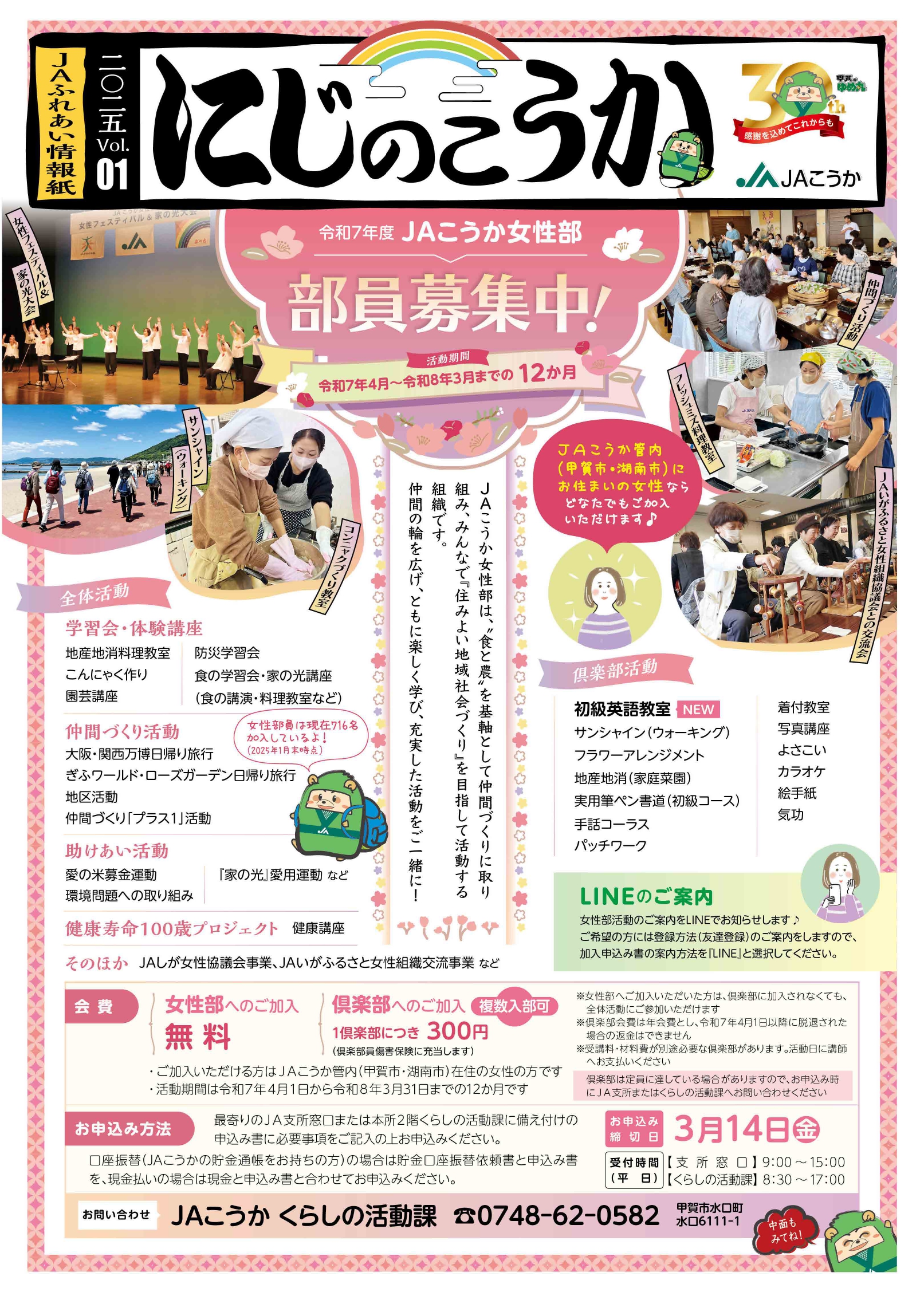 JAふれあい情報紙『にじのこうか』2025 vol.1 を公開! 令和7年度女性部員大募集/じゃがいものプランター栽培/花野果市通信(直売所出荷者紹介)/旬のスイーツレシピ/読者プレゼント!